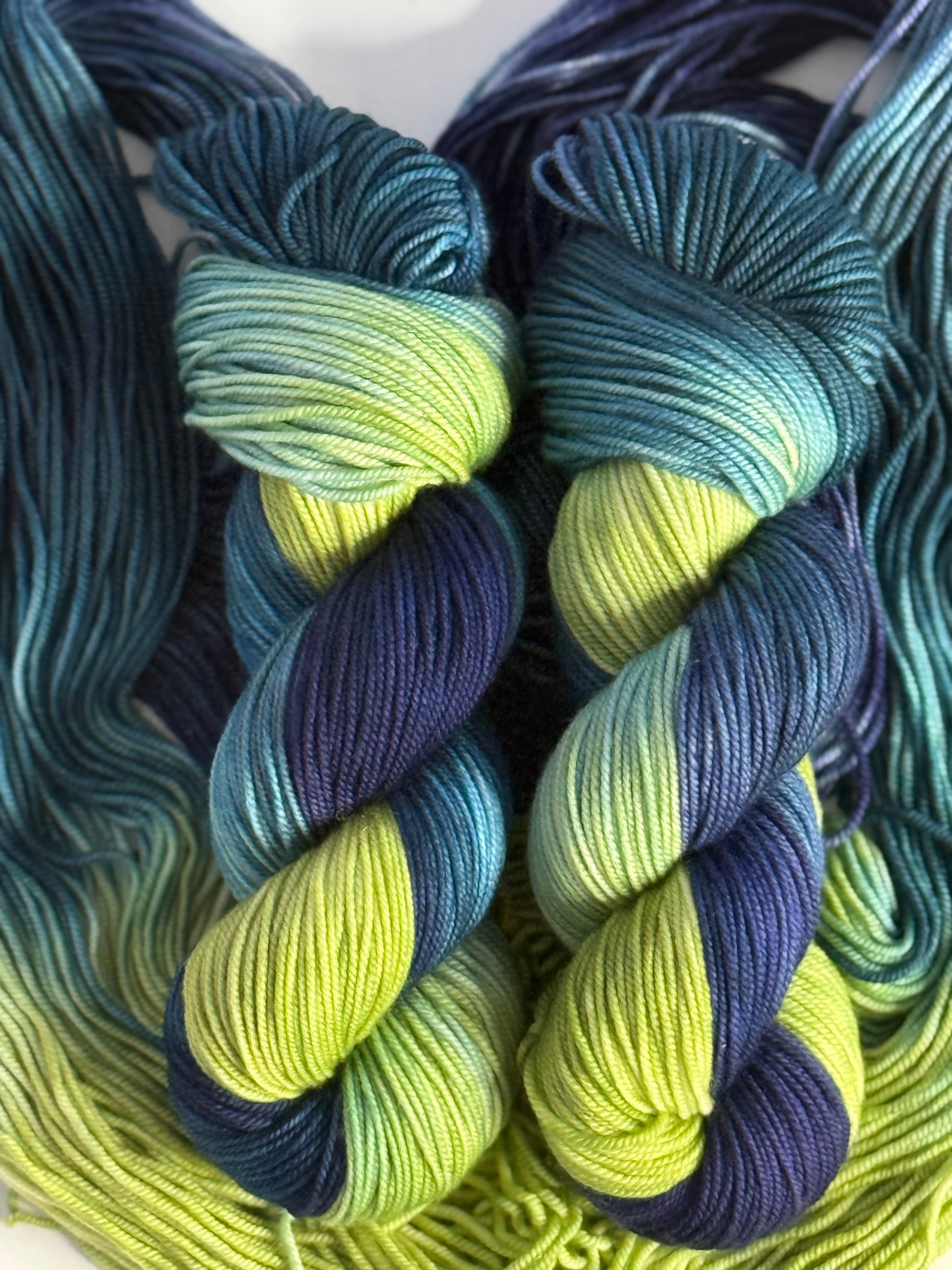Each skein is dyed in small hand batches, making every one a little different, like living light that can never repeat itself exactly.
