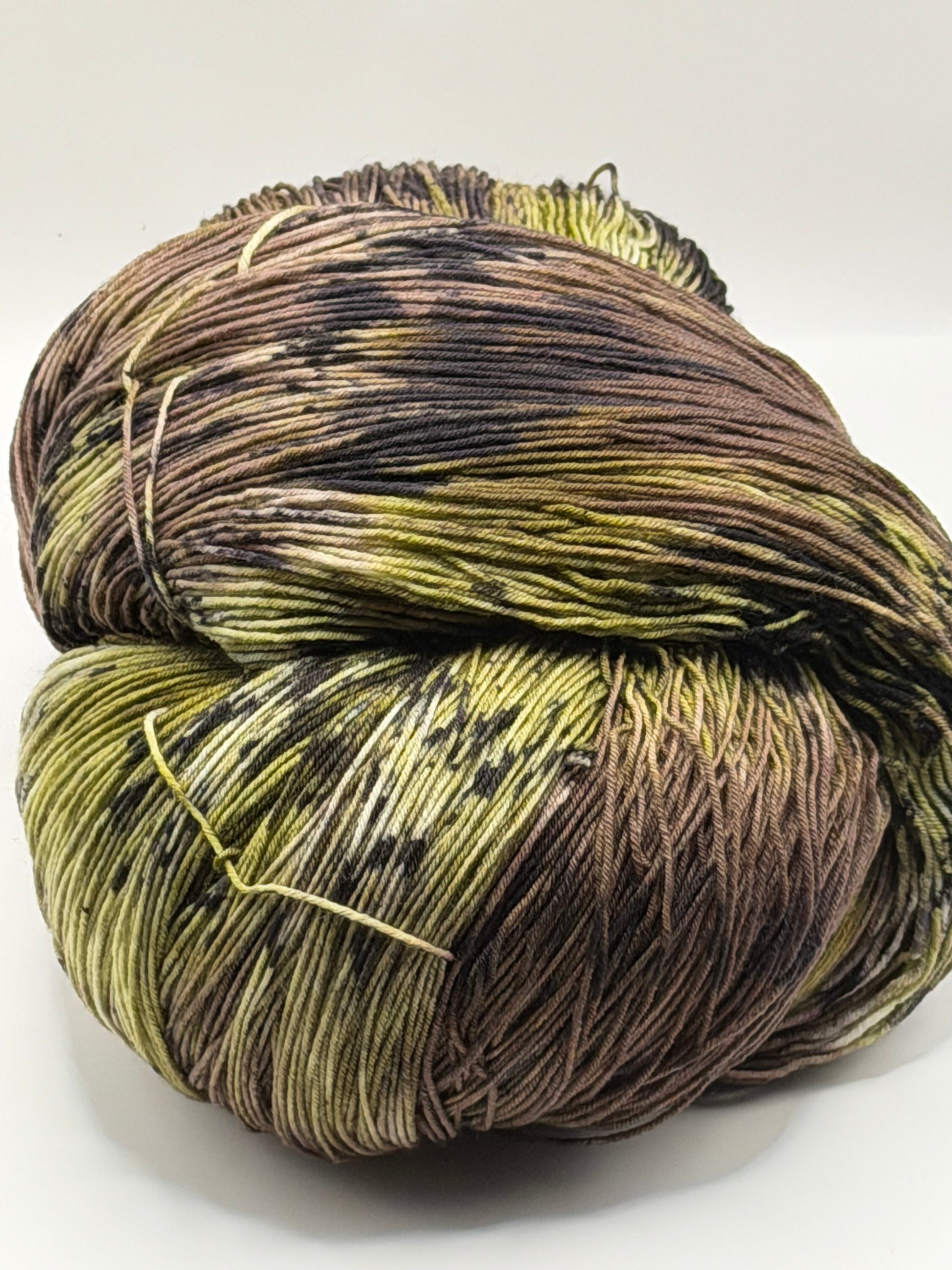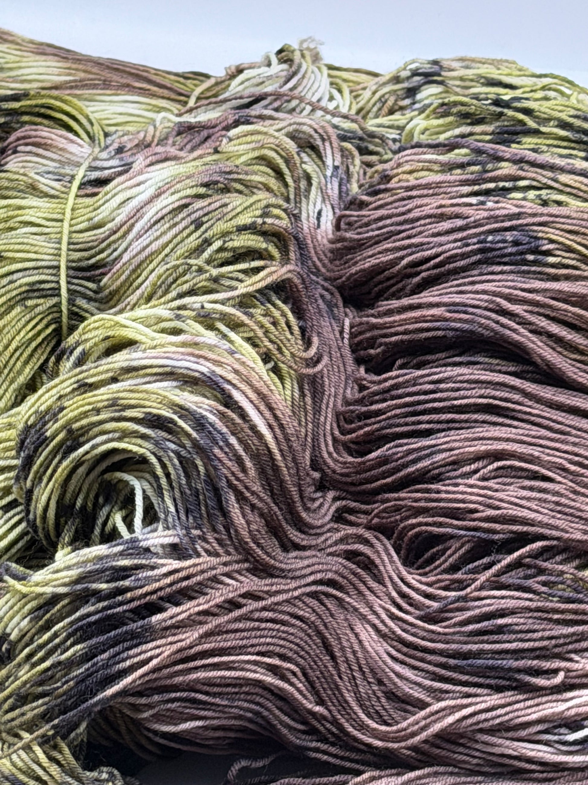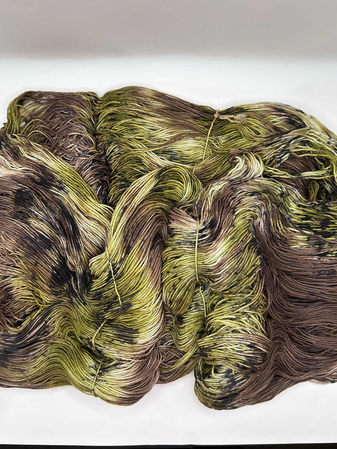 Frontlines is forged in the colors of the field—muted olive, worn brown, and shadowed depths echoing long marches, quiet watches, and the grit of those who stand their ground. It reflects the weight of duty and the strength found in unity, where every thread holds steady under pressure. Hand dyed in small batches, this colorway honors resilience, discipline, and the unwavering spirit of the front line.