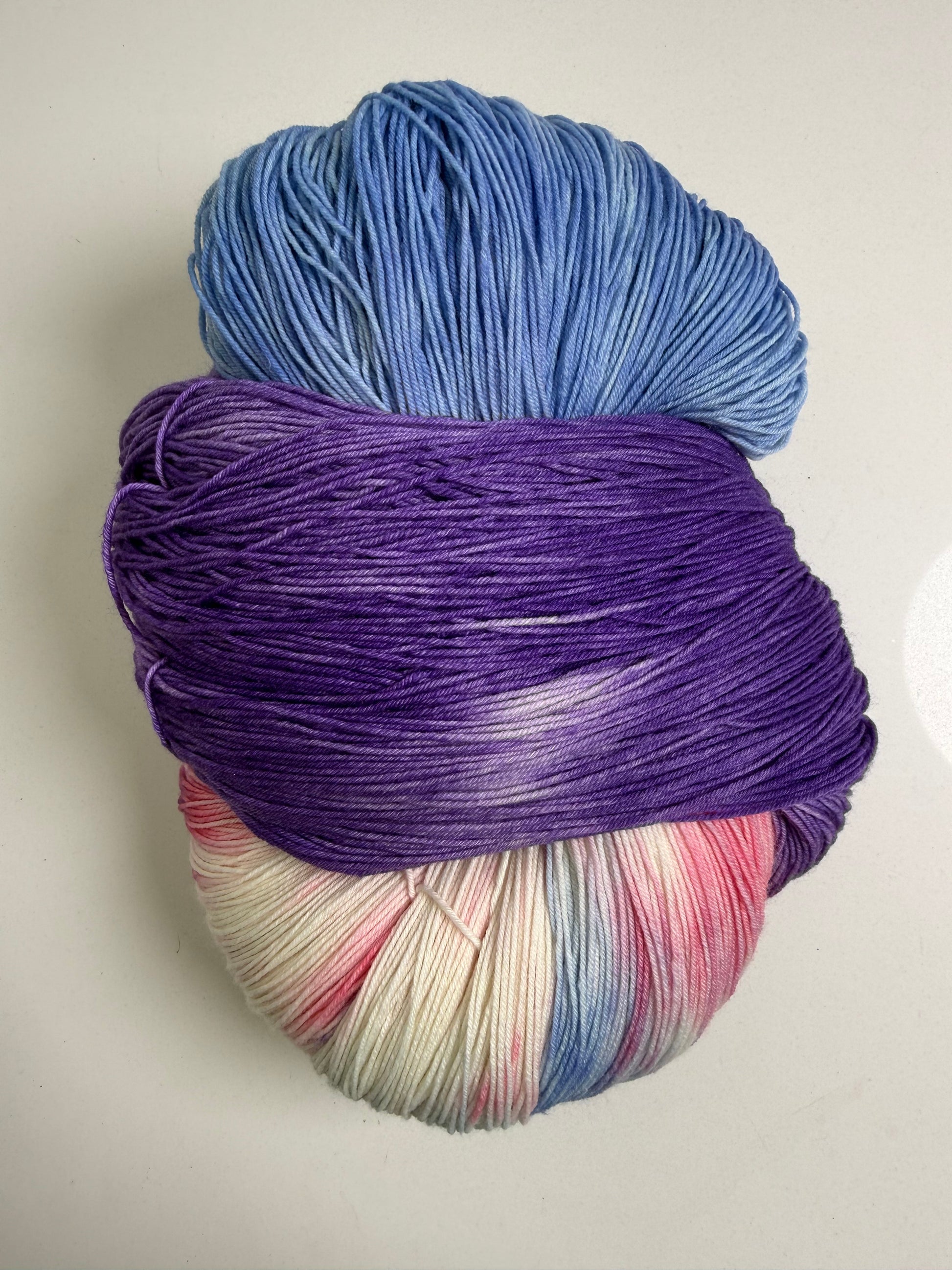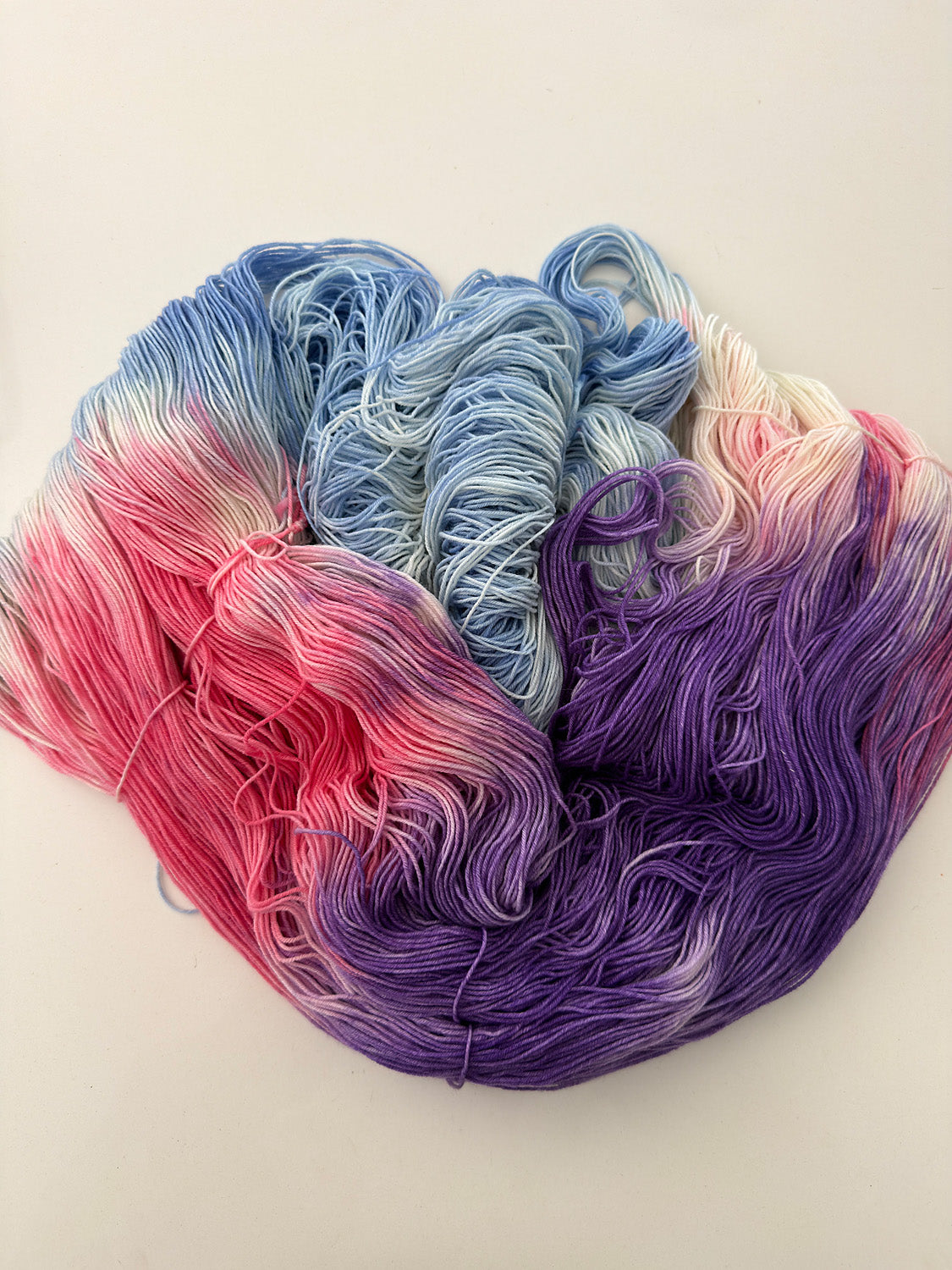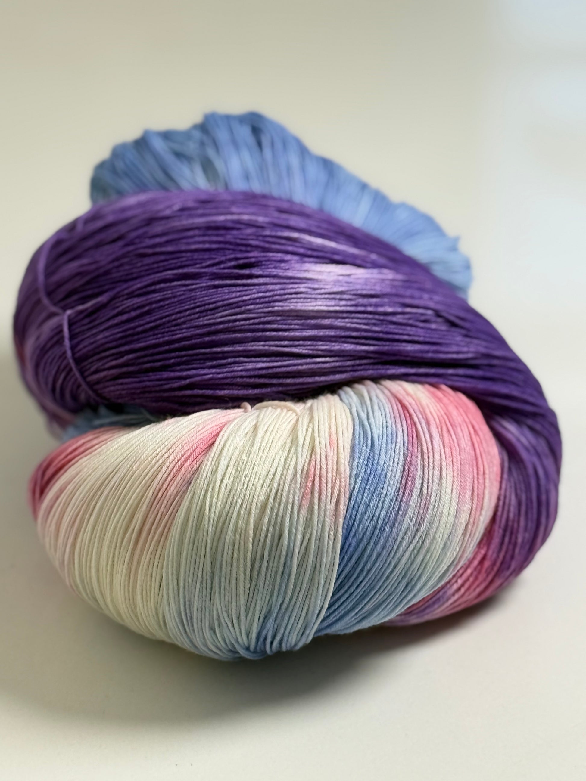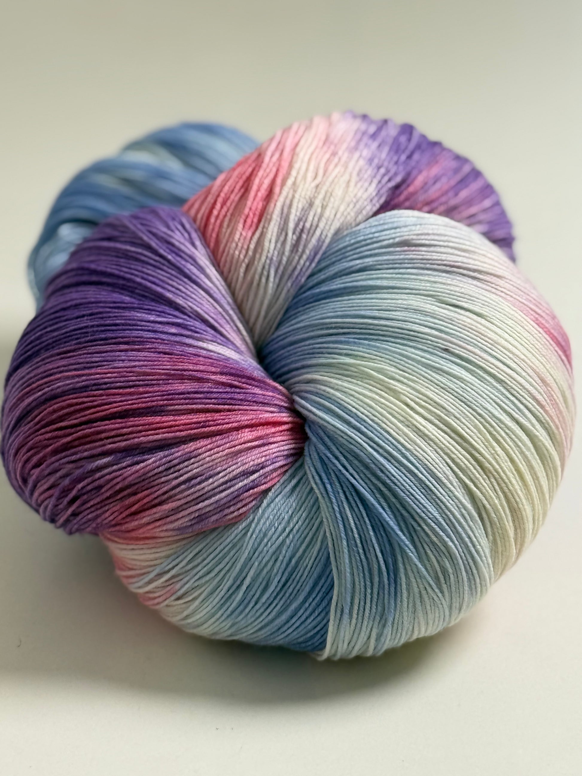 Hand dyed in small batches, each skein shifts delicately from frost to bloom, making every one uniquely yours.